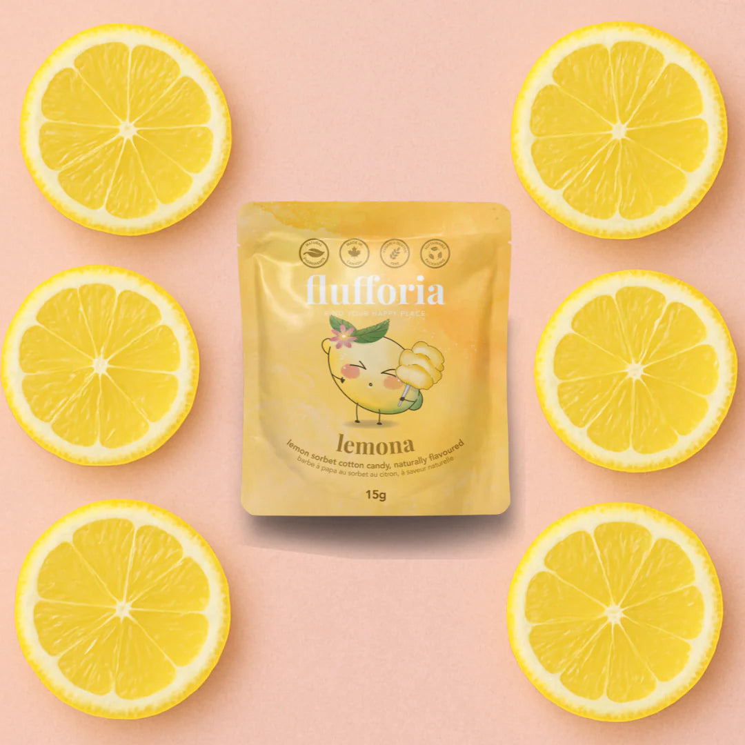 Subtly sour yet sweet, Lemona is made with organic sugar and all natural ingredients. It's hand spun and lemon sorbet flavored.